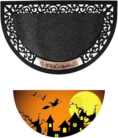 Amazon Com Halloween Door Mat Welcome Indoor Entry Way Doormat For Front Door Patio Anti Slip Rubber Entrance Door Mats Half Round Holiday Decor Heavy Duty Easy Clean Style D Kitchen Dining