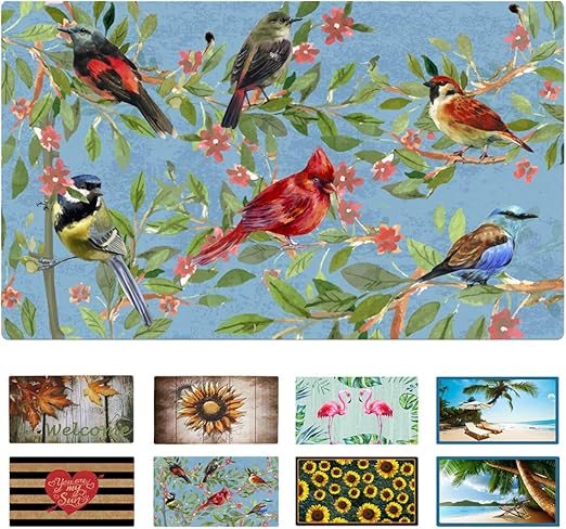 Amazon Com Welcome Doormat Decorative Front Door Mats Non Slip Door Mat 17 X 29 Printing Floor Mats Indoor Outdoor Spring Printing Birds Entryway Rugs For Home Garden Kitchen Dining