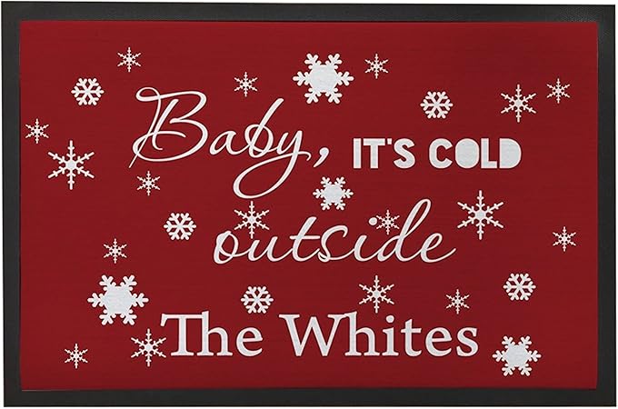 Amazon Com Dick Sidney Funny Christmas Doormats Custom Faimly Name Door Mats Red Snowflakes With Sayings Baby It S Cold Outside Floor Mats For Entrance Way Home Decor Door Mat Rug Outdoor