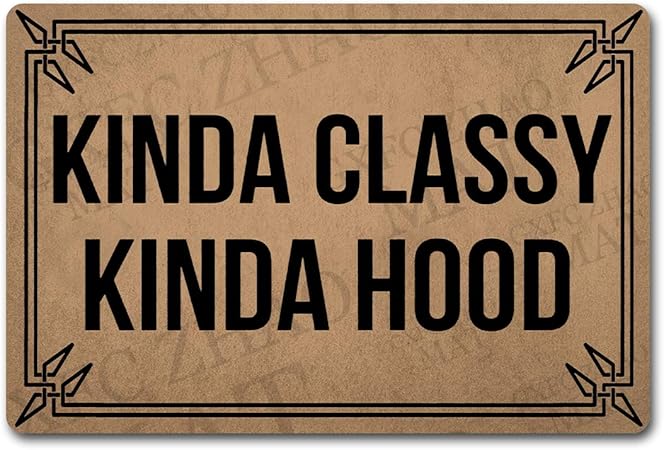 Amazon Com Funny Welcome Mats Decorative Area Rugs For Entrance Way Indoor Doormat Kinda Classy Kinda Hood Personalized Monogram Kitchen Rugs And Mats With Anti Slip Rubber Back Novelty Gift 23 6 X 15 7 In