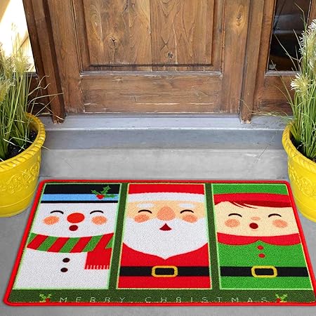 Amazon Com Uratot Christmas Creative Decorative Door Mats Santa Elf Snowman Face Printed Welcome Floor Mats For Indoor Outdoor Home Garden 20 X 28 Inches Garden Outdoor