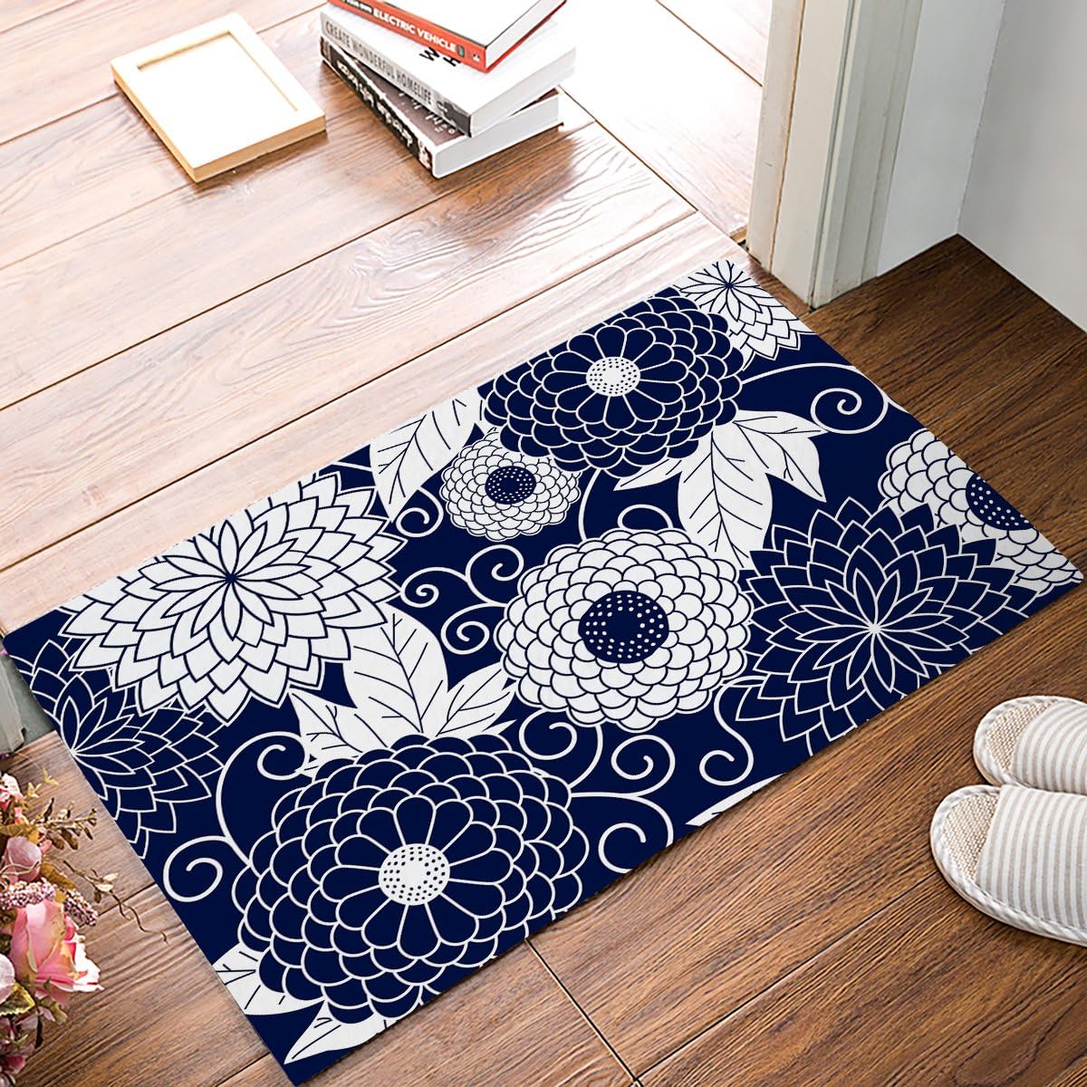 Amazon Com Yeho Japanese Decorative Traditional Floral Pattern Navy Blue And White Door Mats Kitchen Floor Bath Entrance Rug Mat Absorbent Indoor Bathroom Decor Doormats Rubber Non Slip 18x30inch Garden